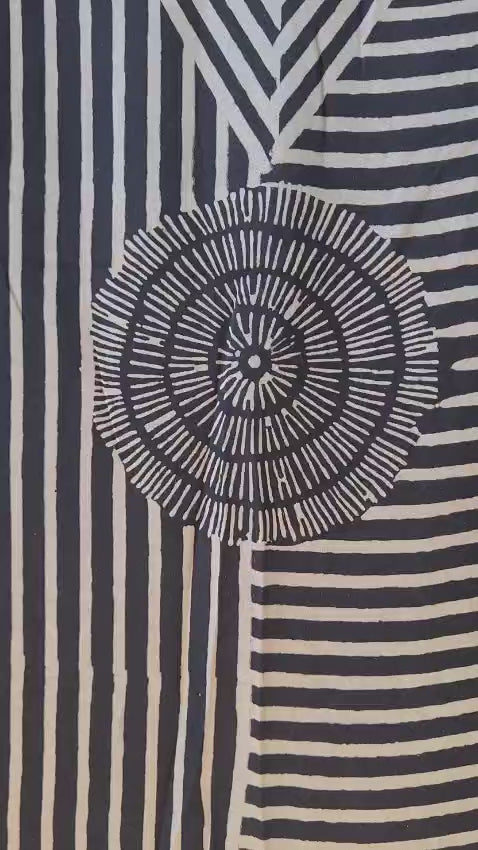 Ajrakh handblocks, Natural colour dyed these stripe Kaftans are stylist and elegant looking wear for all kind of occasion. Our Kaftans are Easy, Flowy and Breathable the most comfortable in all season. Black and White Stripes make this kaftan more chic and graceful.