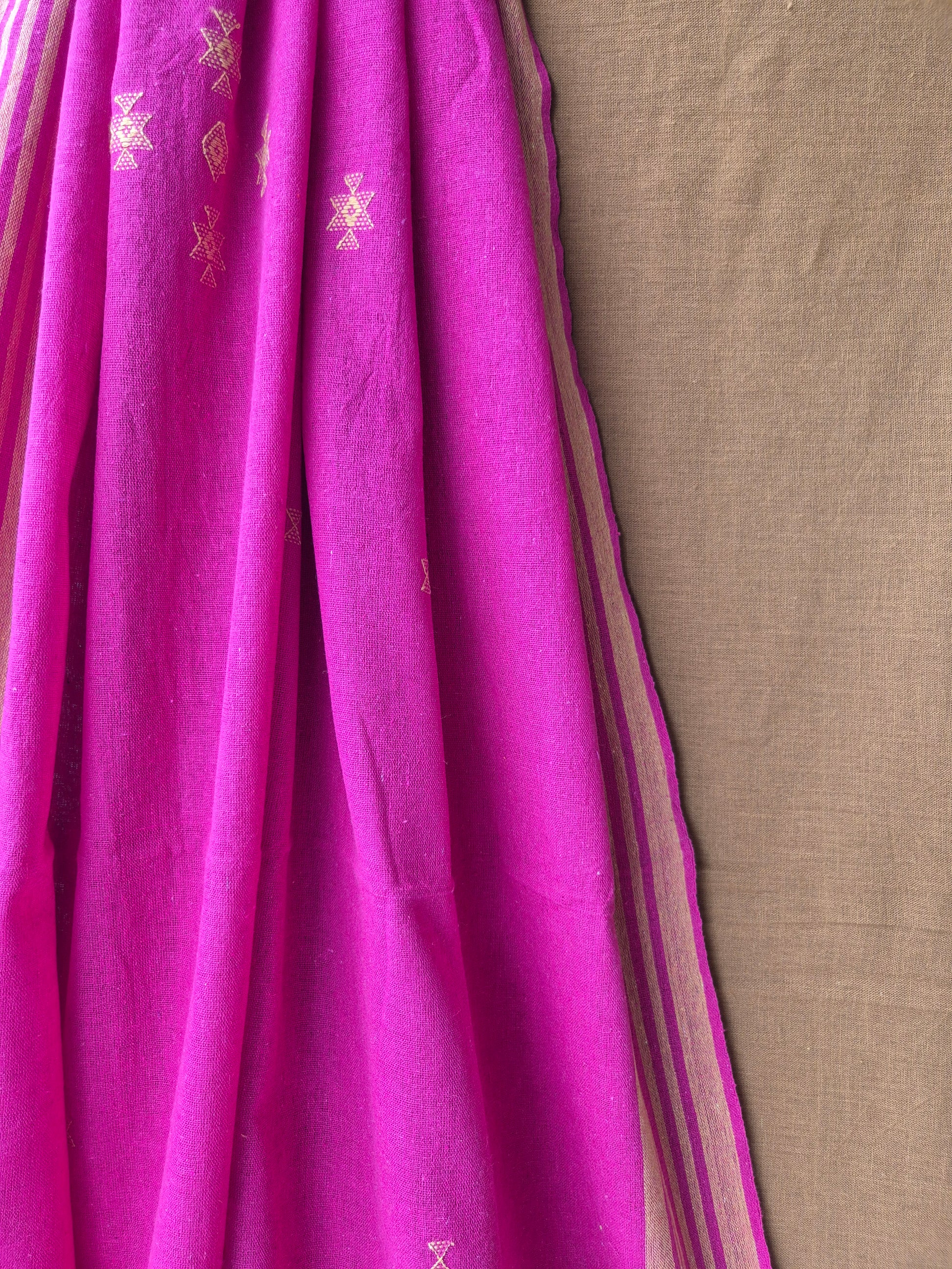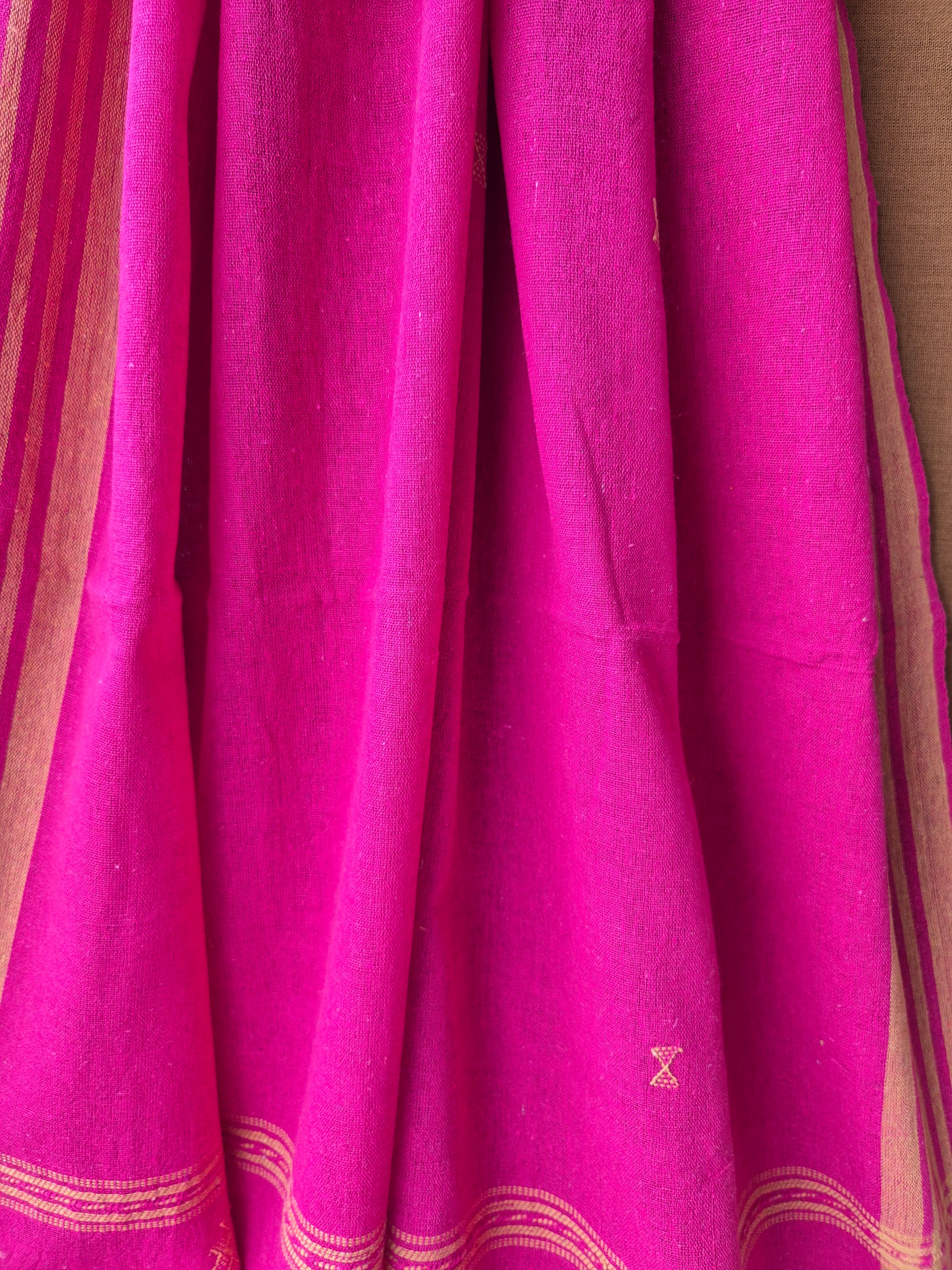 free dyed. Rani Pink Coloured Dupatta has beautiful tassels. Breathable Kala Cotton suit is all