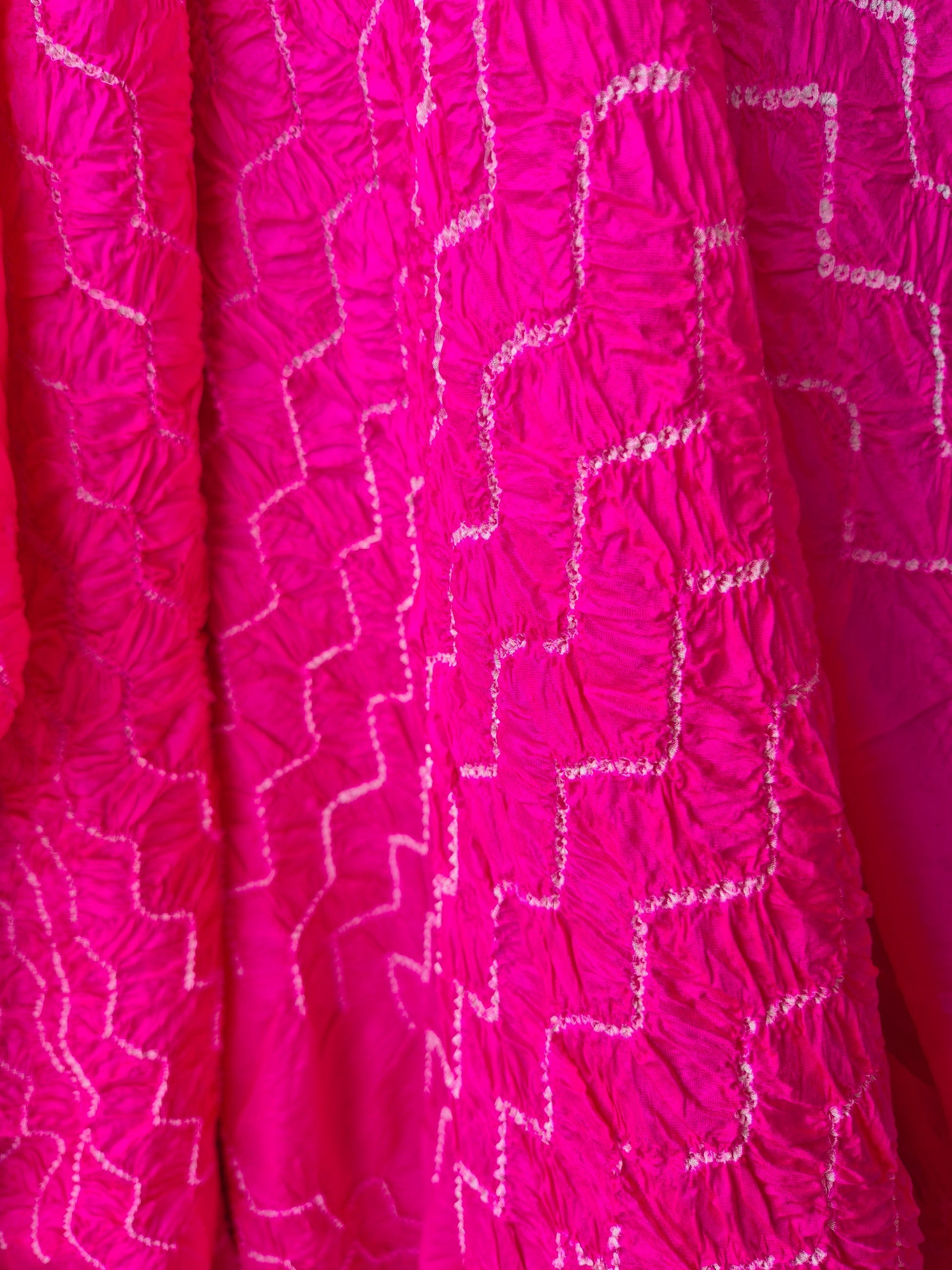 Rani Pink with white bandh pure Katan Silk Rai Bandhej Banarasi weave designer